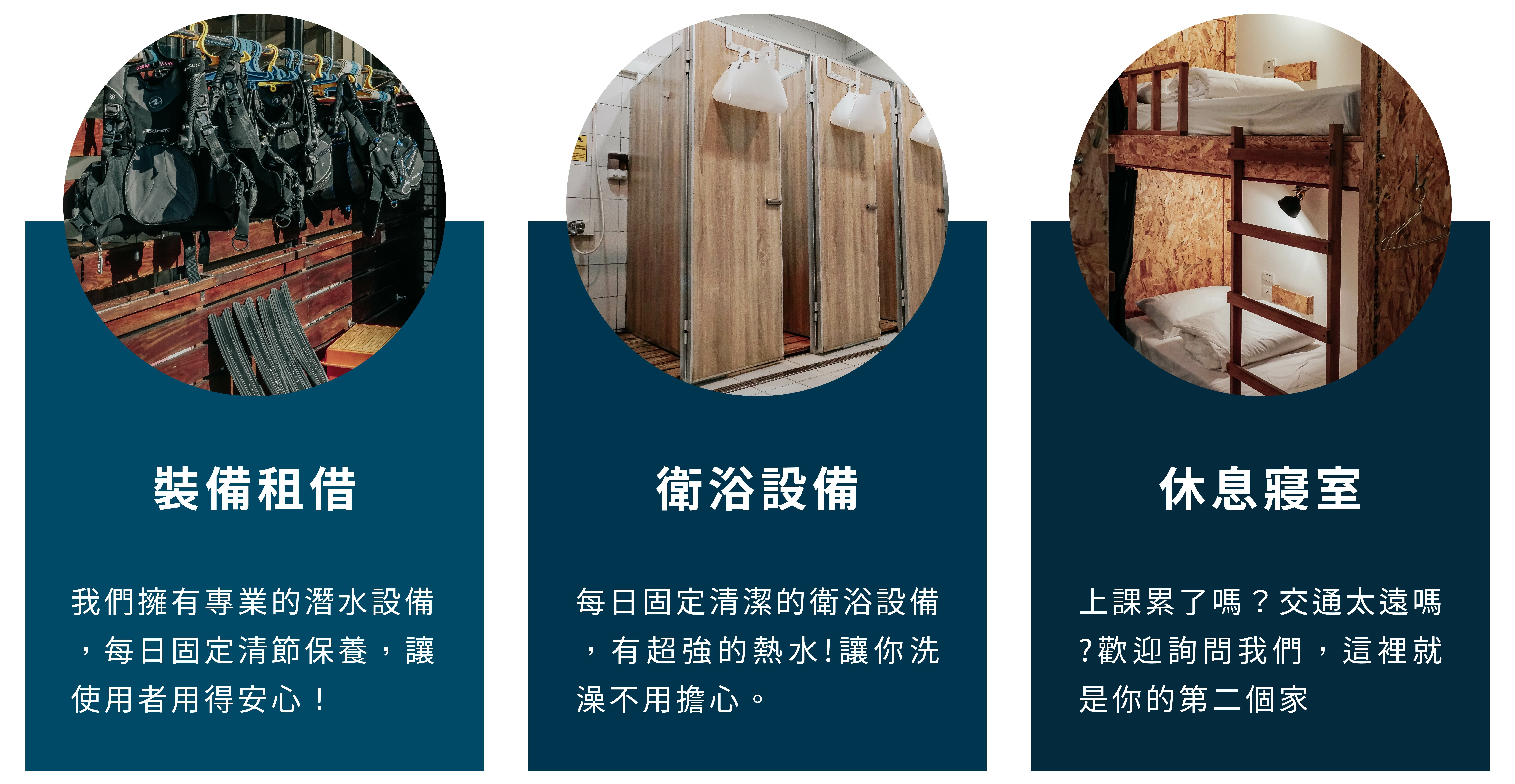 我們一直認為,優秀的學習環境才能夠真正幫助學生在學習潛水的道路上更加順利,這裡除了舒適明亮的教室外,還備有悠閒的交誼大廳、熱水超強的乾淨衛浴,累了有可以休息睡覺的房間,還有工具台、相機清理台等等,並且IDiver潛水中心的裝備器材都會定期保養,經過嚴格的檢查,這裡不僅是你探索大海的起點,更是你在大海旁的第二個家。