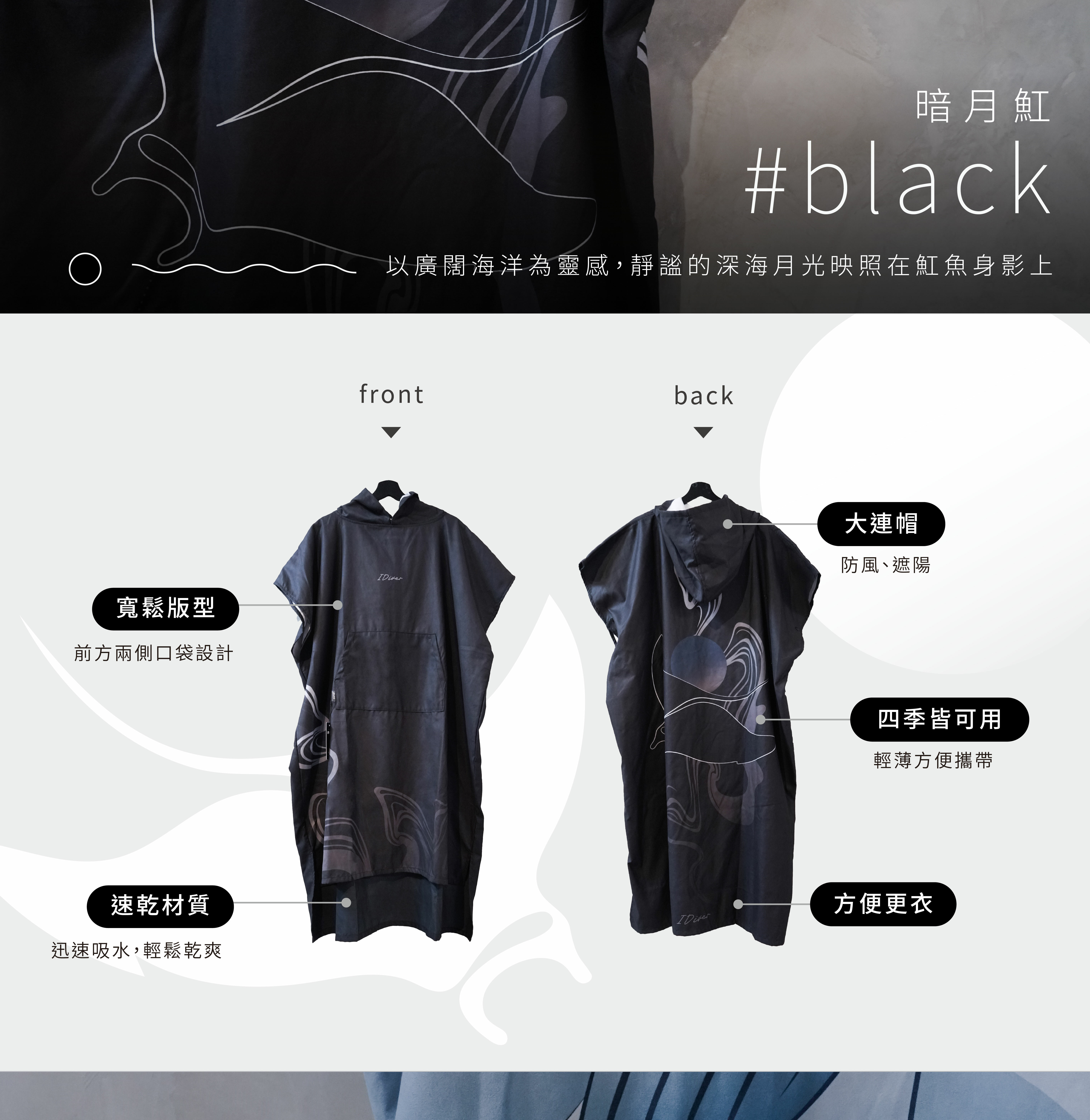 IDIVER - 快乾毛巾衣 - 暗月魟(黑/灰)