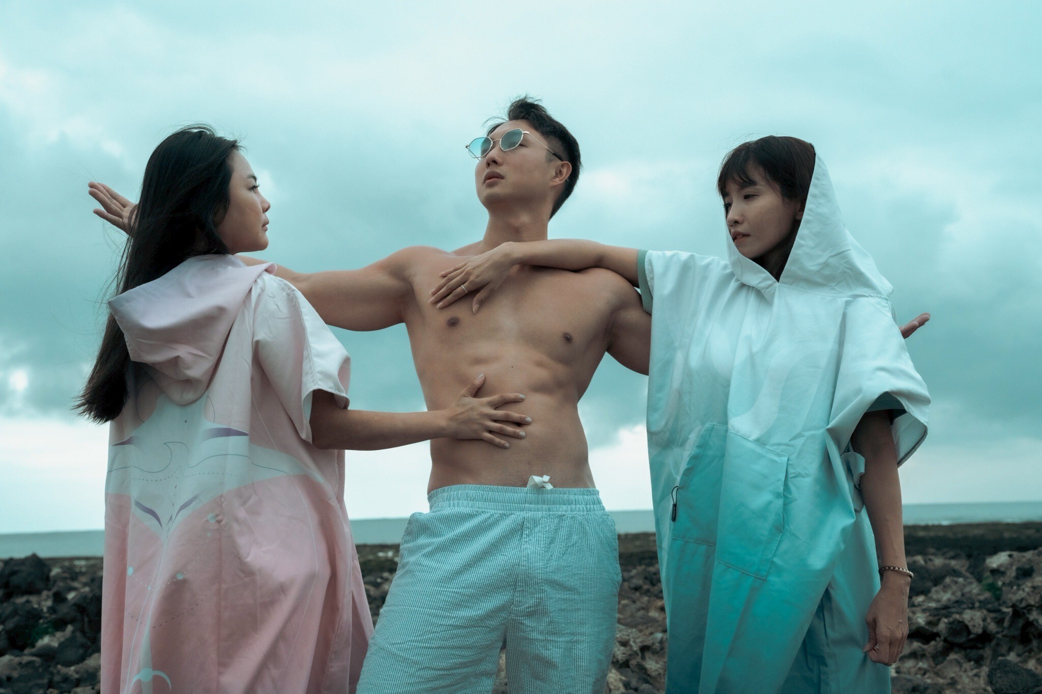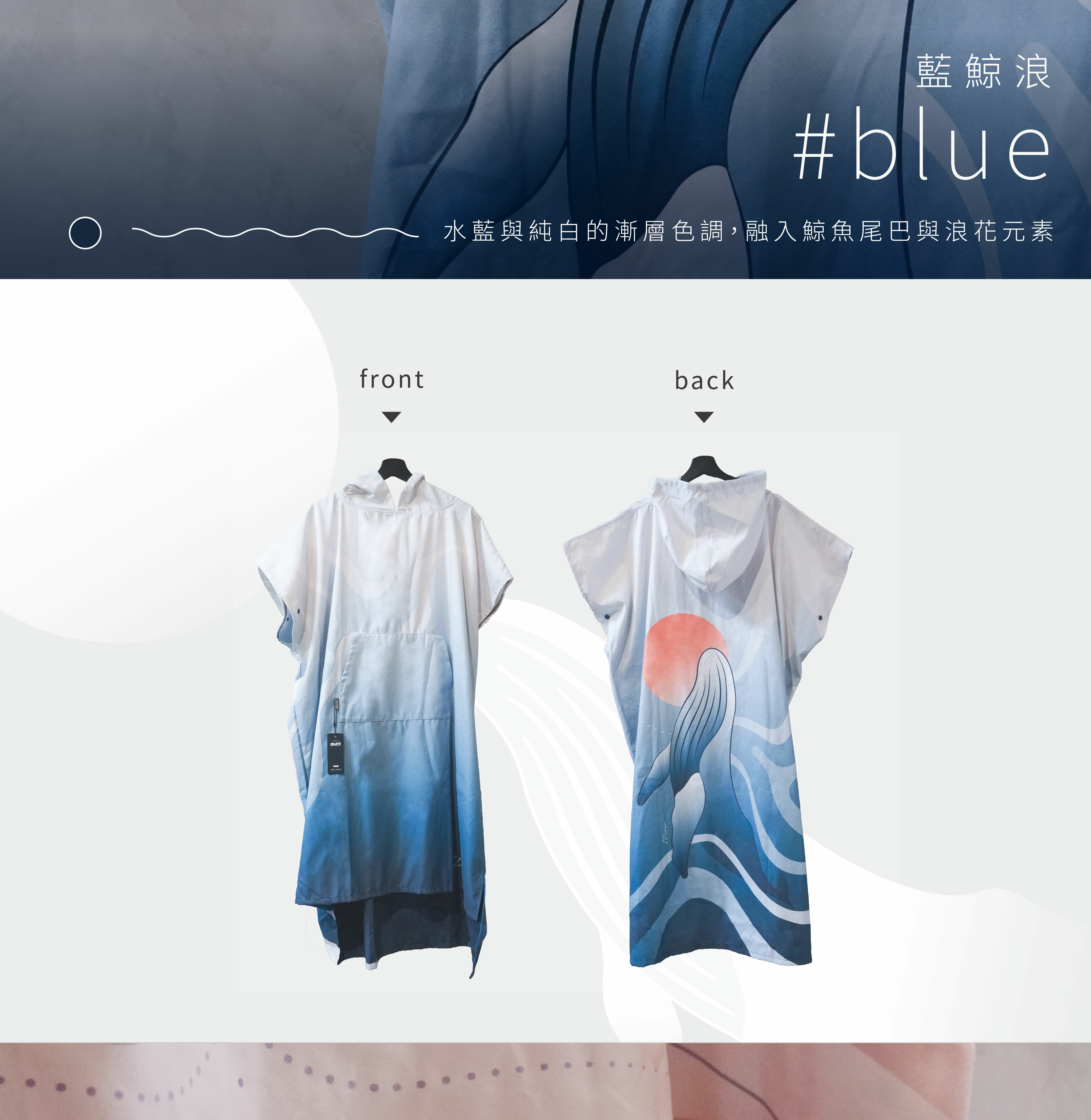 水藍與純白的漸層色調,融入鯨魚尾巴與浪花元素