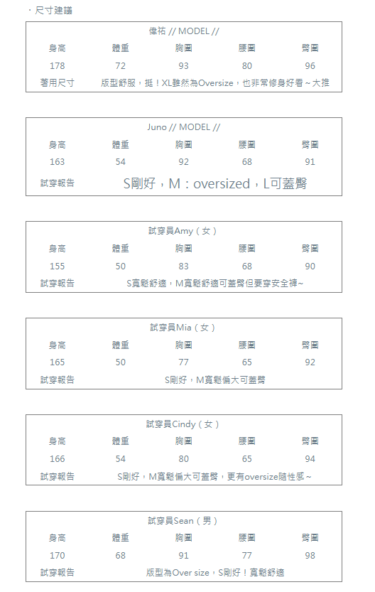Oversize寬鬆版型:男女共穿版型,S~XL四段尺寸友善大部分身型!