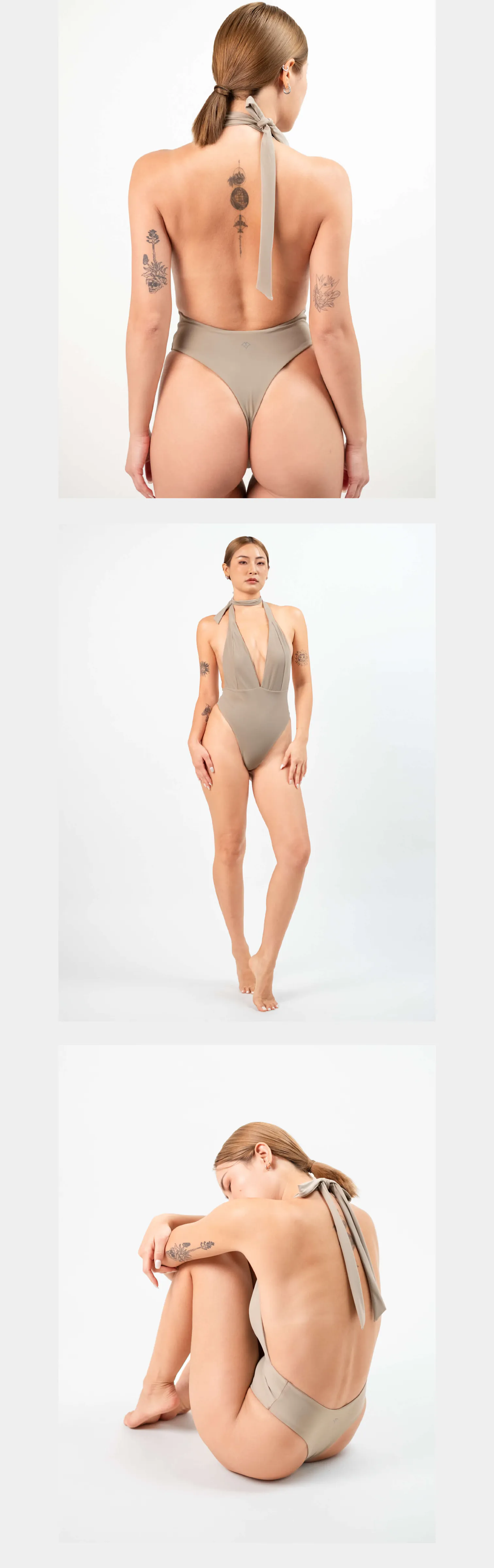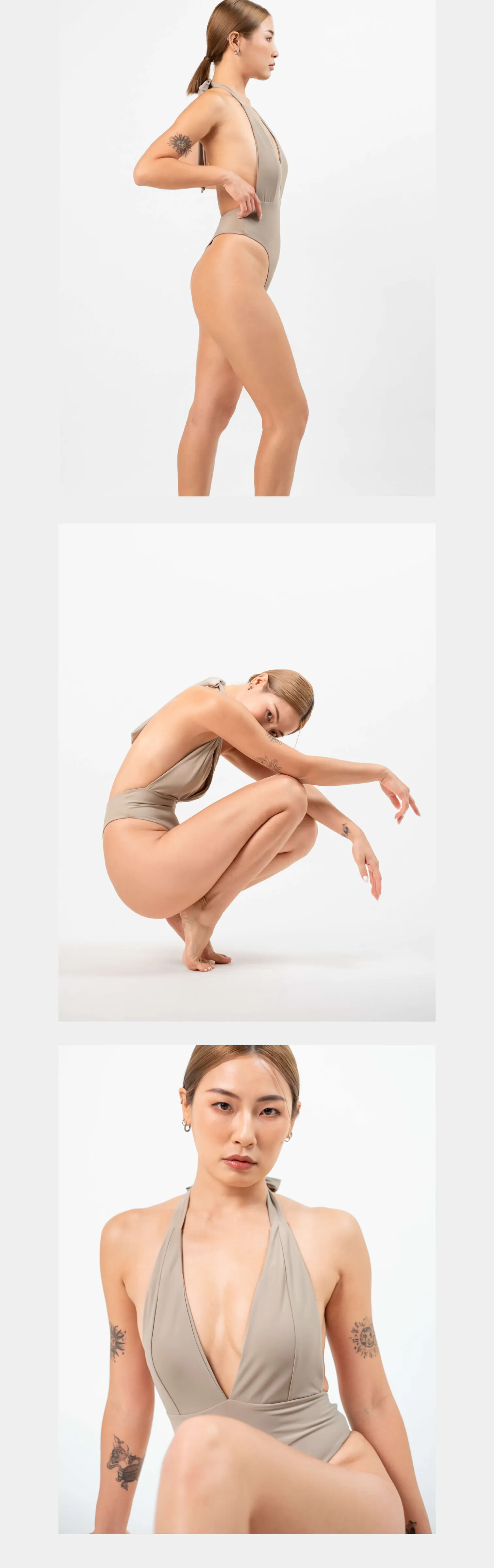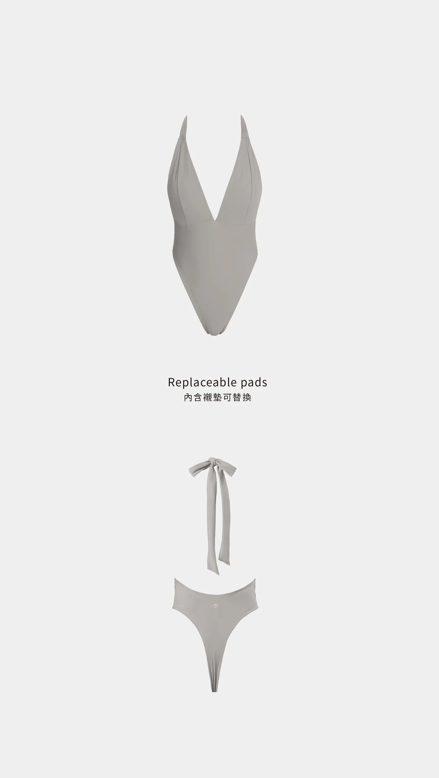 柔和且自然的灰色,帶有一絲溫暖的白色調,散發出精緻、寧靜和高貴的氣質,側胸 V 型剪裁,配上極高衩及全開美背,質感與性感兼具,一件泳裝就能穿出不同風格。