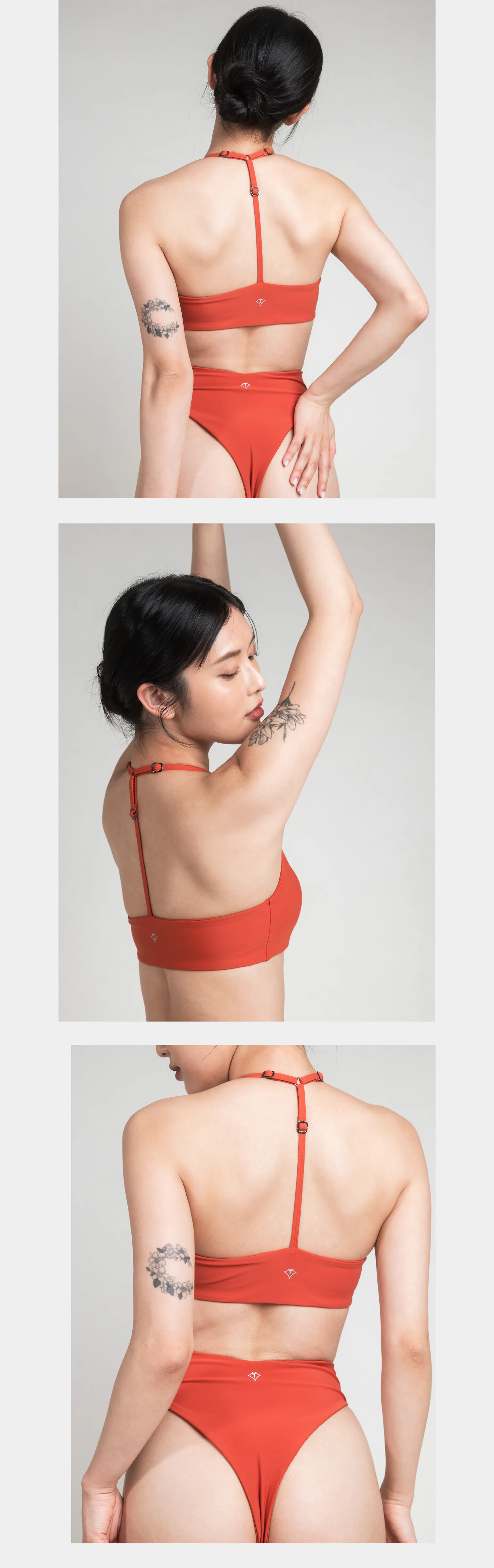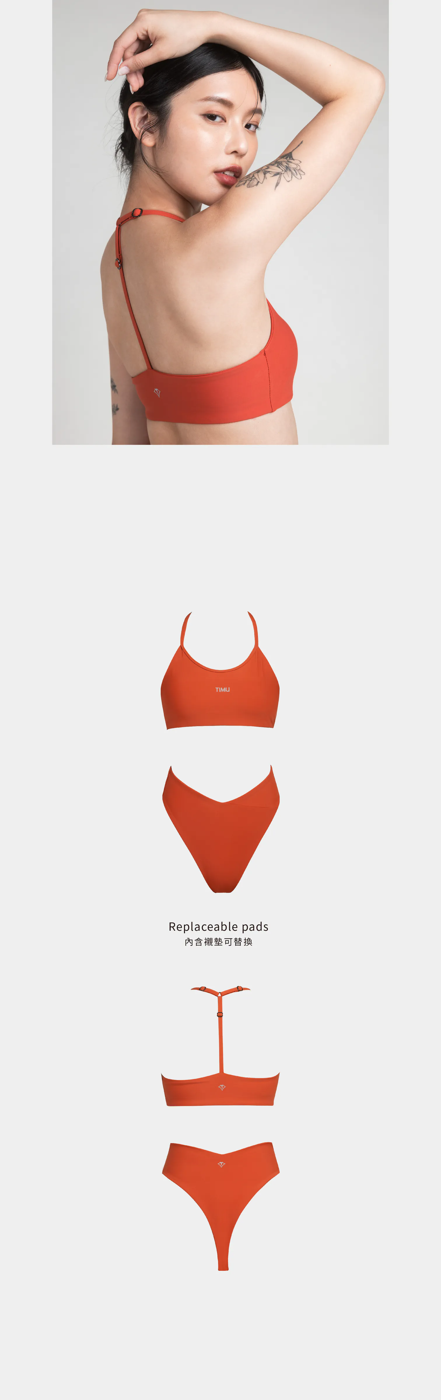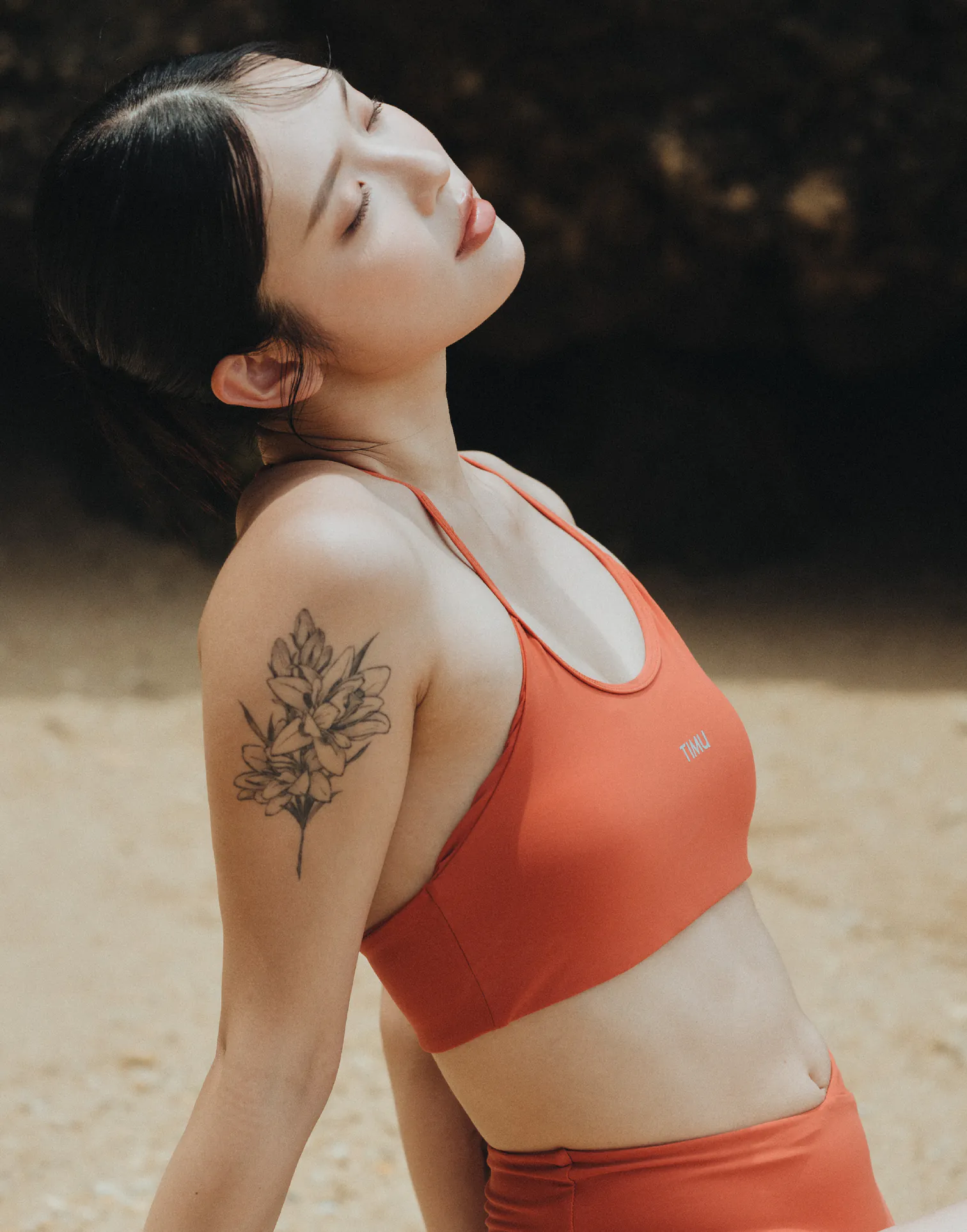 餘暉的霞紅隨著夕照更迭,沿途海風徐徐,伴著波光與愜意。全新運動背心T字調節設計,搭配修飾肩頸線條的繞脖肩帶,極致凸顯性感鎖骨部位,開放式美背,讓活動不受限, 解放雙手以及掉肩帶的困擾,高服貼度適合各種強度運動。