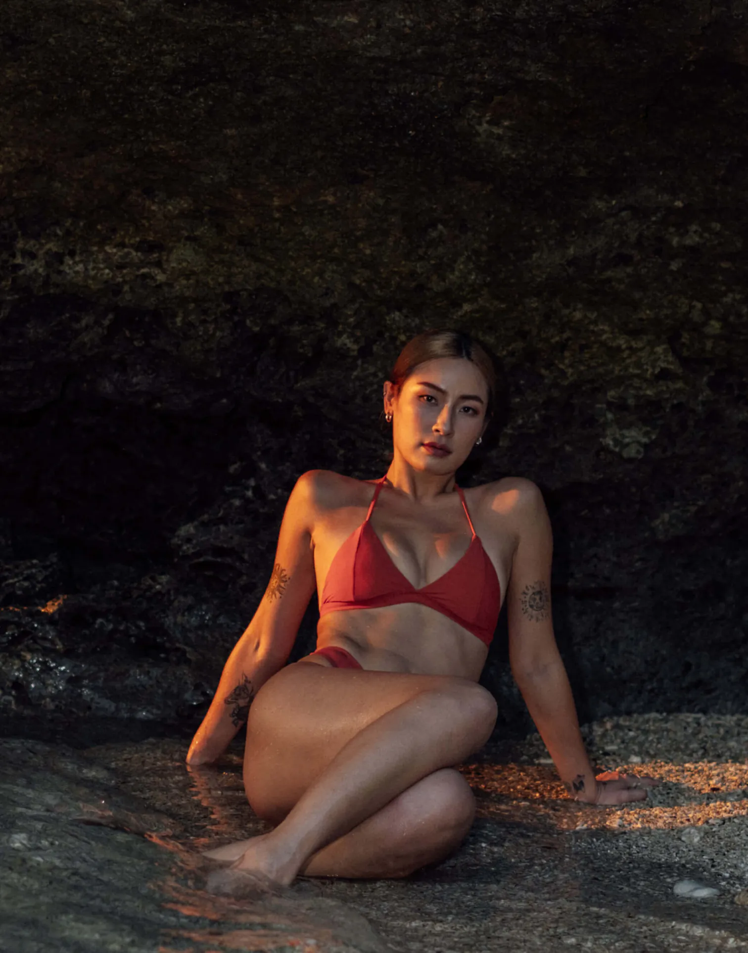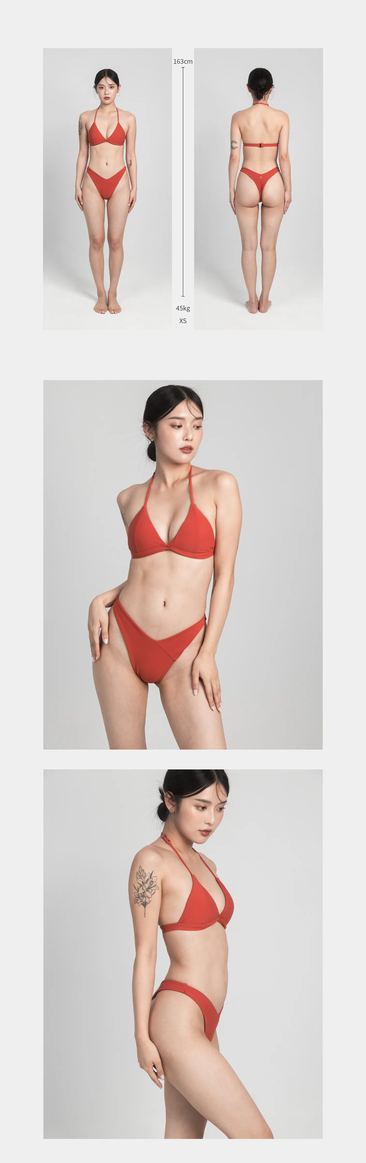 餘暉的霞紅隨著夕照更迭,沿途海風徐徐,伴著波光與愜意。做最自然的自己,擁抱當下的感受!極簡化綁帶設計,曬出完美無痕古銅肌,使用鋅和金製副料環的質感細節,胸圍皆可自由調整。